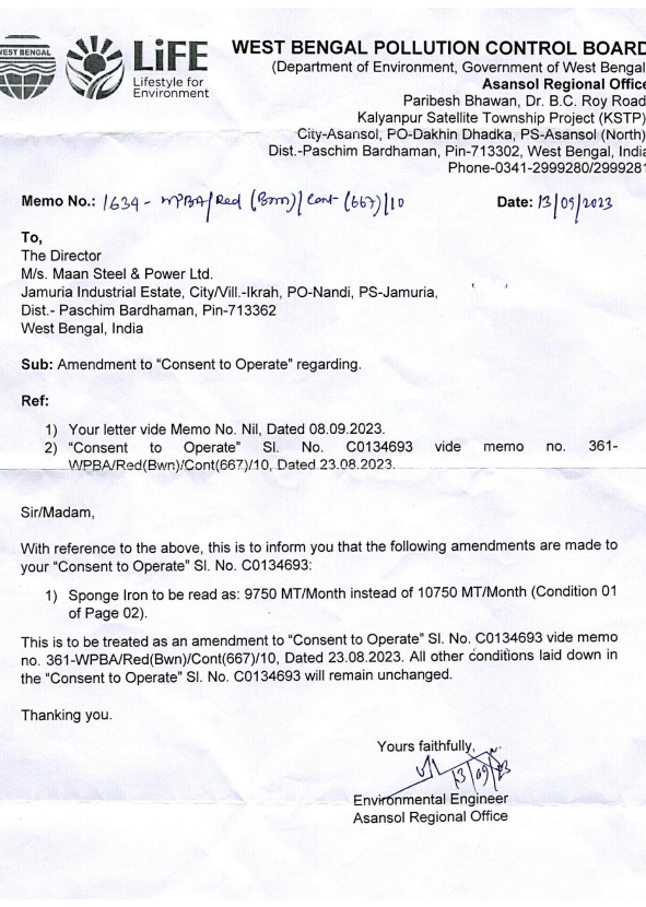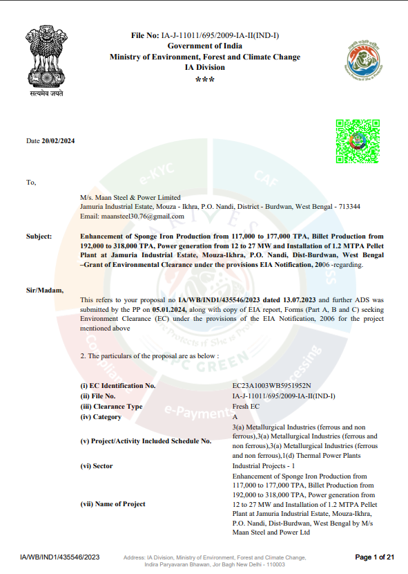 Maan Steel & Power Limited – Environment Statement